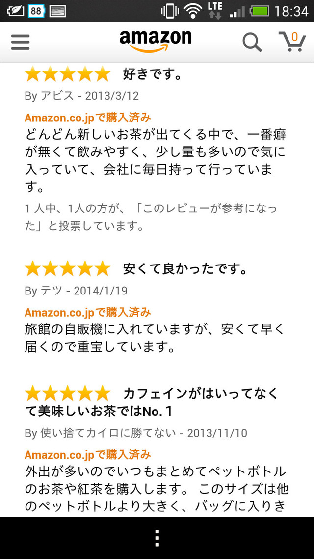 またAmazonではおなじみの、1-Clickボタンも用意されているので、最初に登録をしておけば、後は面倒な手続きをせずに、すぐにお買い物ができます。もちろん、欲しいものリストやカート情報はパソコンなどのWeb版と共有でしますので、気になった商品はとりあえずカートに入れておき、あとでパソコンから注文を確定、という使い方もできます。