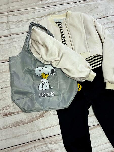合わせやすいシックなカラーのかわいいスヌーピーデザインなだけでなく、大容量で収納力も抜群!使わないときはコンパクトにまとめて持てるのもうれしいですよね♪