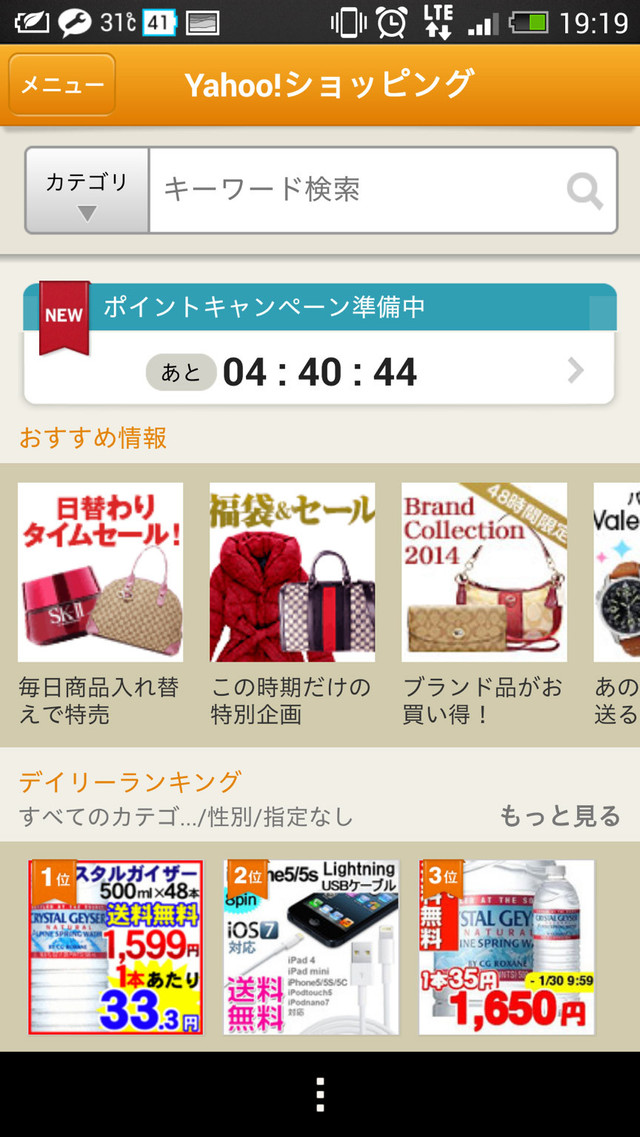 ヤフーが運営するショッピングサイトのアプリです。さまざまな店舗が出店する、楽天と同じショッピングモールスタイルのサービスです。