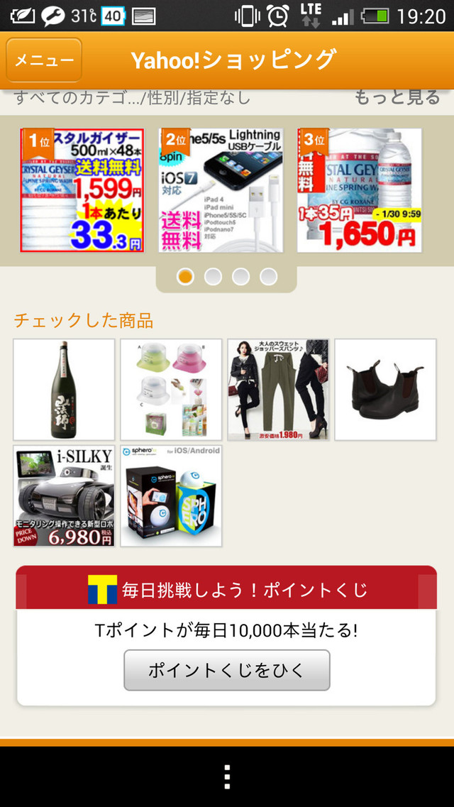 Tポイントがもらえる“ポイントくじ”がうれしい!「Yahoo!ショッピング」アプリ