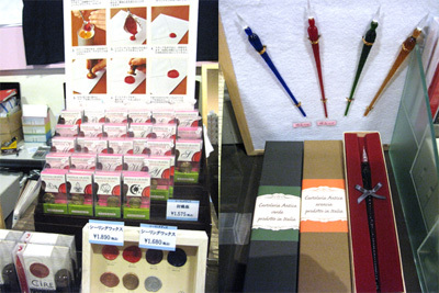 シーリングワックス1,890円、1,680円、封蝋板1,575円(写真左)