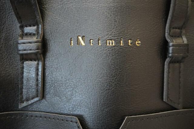 ブラックの生地に箔押しされた「iNtimite」のゴールドのロゴ。