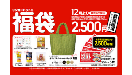 リンガーハットは12月1日から順次、全国のリンガーハット店舗で「福袋」を数量限定で販売する。価格は2500円。