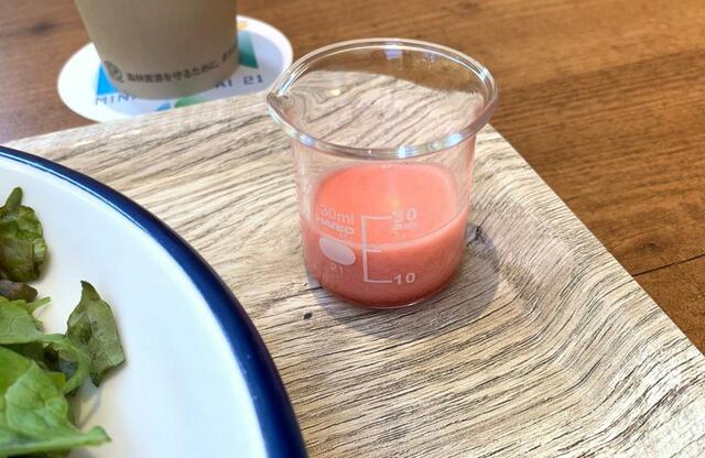 せっかくなので、スムージーもいただくことに。この日のスムージーは、緑スムージーといちごのスムージーの2種類がありました。いずれも税込み800円!