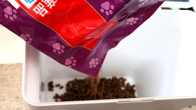 ケースは約3㎏までのペットフードが袋ごと入る大容量。現在与えている1.8kgのカリカリは、余裕で袋ごと入りました。