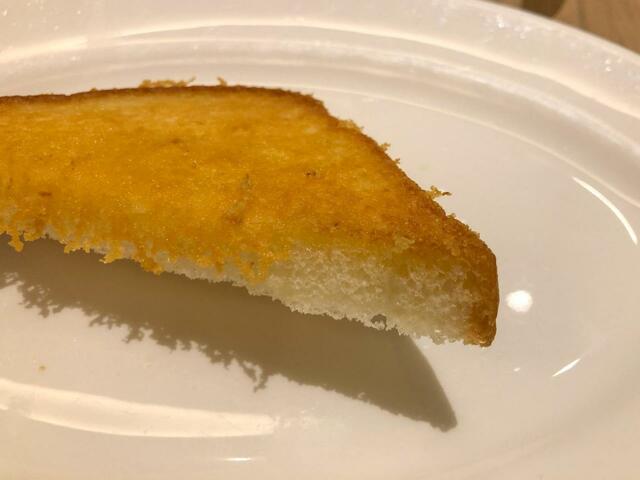 パルメザンチーズとマーガリンのスプレッドがたっぷり塗られて焼き上げられた黄金色のチーズトースト。香ばしいチーズの味とクリスピーな食感の相性が最高なんです。