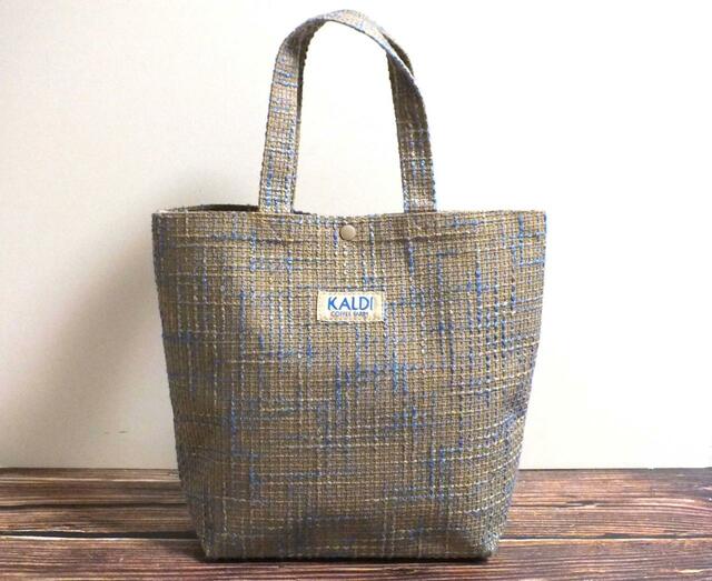 寒い季節にぴったりな温かみのあるツイード生地のオリジナルバッグ。今年のバッグはマスタードとブルーの2カラーあります。筆者はマスタードを選びました。