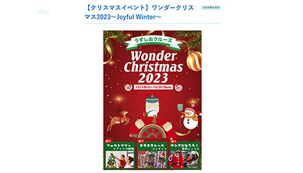 ジョイポート淡路島は12月1~31日の期間、同社の運営する兵庫県・淡路島福良港発の「うずしおクルーズ」において、「ワンダークリスマス2023~Joyful Winter~」を開催する。