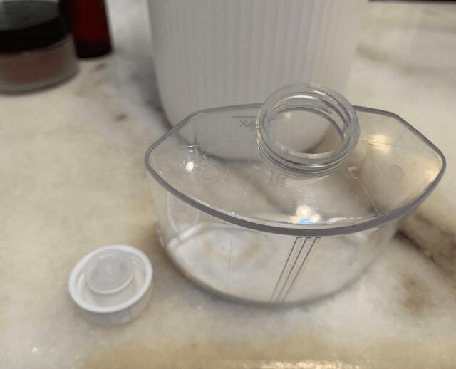 そして給水タンクの口部分は、ちょうど水道水が入るように適度な太さがあります。水を入れたあとは本体へ元通りにセットすれば、給水は完了です。
