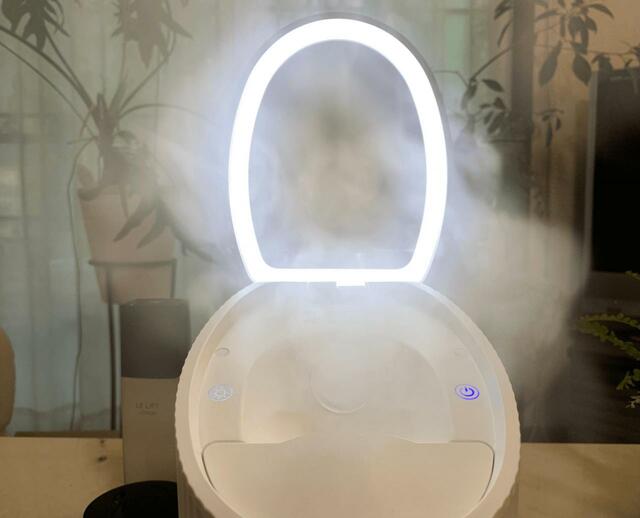 ただし、スチームが出ている時にはスチームでミラーが見えにくくなるので、メイク前にスチームを当てて保湿ケアをおこない、その後メイクへと進むのがおすすめの使い方です。