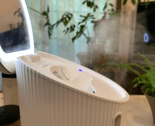 「MiCOLA(ミコラ)」フェイススチーマーのスチームは、微風でも影響を受けます。そのため、顔の正面に置いても横から空気の流れがあれば、スチームが流れてしまい顔にはうまく当たりません。