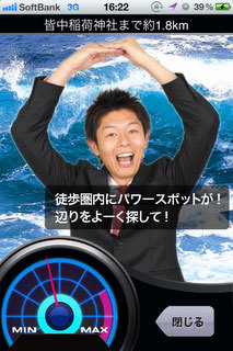タレント島田秀平が、自らの体験や知人のエピソードを交えた東京近郊のおすすめパワースポットを紹介しているアプリ。Googleマップとも連動して現在地から近くのパワースポットを検索できる。さらに現在地のパワースポットに反応するパワーレーダーがポイント。歩きながら、近くのスポットも探せるというワケだ。新しい年に向けて、プラスのパワーをいっぱい吸収して目指せラッキーガイ☆