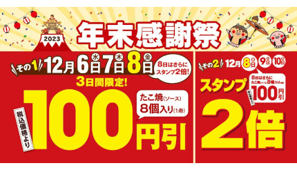 ホットランドは、たこ焼きチェーン「築地銀だこ」の全国店舗(一部店舗除く)で「年末感謝祭」を12月6日から12月10日まで開催している。