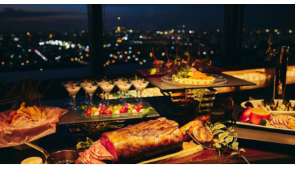 MARTLETは、バーテンダーが作るカクテルと宝石のような煌めく夜景が人気で、週末になると多くのカップルが特別なひとときをこのバーで過ごしている。そんな贅沢空間を貸切で利用できる今回のパーティプランでは、ホテルシェフが丁寧に作り上げたローストビーフのカッティングサービス付きで、豪華なビュッフェ料理と上質なカクテルでお腹も心も満たされる至福のひとときを過ごすことができる。