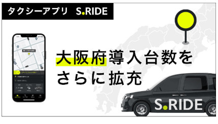 タクシーアプリ「S.RIDE」、大阪府において梅田交通グループが保有するタクシー54台に導入