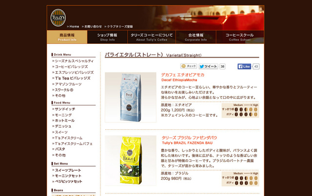 スターバックスと同じくアメリカ・シアトル生まれのコーヒーチェーン、タリーズコーヒーもカフェインレスのコーヒー豆が用意されています。