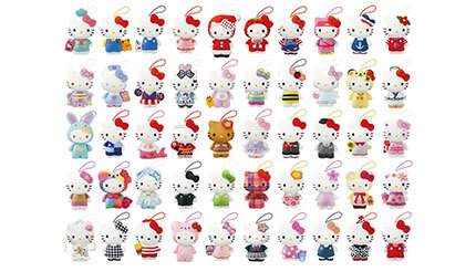 コラボでは、全50種のストラップ付きぬいぐるみが登場。50周年を記念した特別デザインなどのぬいぐるみに、過去のハローキティのデザインの中から、モノトーンデザインの「しろ&くろ」、頭にハイビスカスをつけた「パール」、「ウェディングドレス」「人魚」「いちご」などが選ばれてぬいぐるみになる。マクドナルドのユニフォームを着たデザインも用意する。
