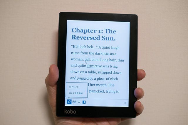 ついでに紹介しておくと、Koboは実は専用のリーダー以外にも、iOSやAndroidアプリが出ていますので、普通にスマホやタブレットでも読むことができます。書籍はクラウドで管理されているため、自分のアカウントが一つあれば複数の端末で楽しめるのです。手元にKobo端末がないという人は、まず はこちらのアプリから使い始めてみてはいかがでしょうか。