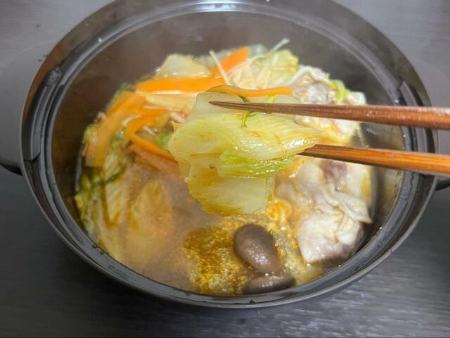 また、この後冷凍のうどんを入れて〆にキムチうどんを食べましたが、お鍋とうどんでお腹いっぱいに。量としても十分です!
