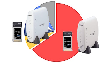 メーカー別シェアでも、もちろんメルコが首位を獲得しており、シェアは65.3%。2位以下はコレガ(7.5%)、NEC(7.2%)、アップル(5.8%)、IOデータ機器(5.6%)と続いた。当時はまだIEEE 802.11bが主流で市場の7割弱を占め、IEEE 802.11gへと移行していく途中だった。現在ではIEEE 802.11ax(Wi-Fi 6)が8割弱を占めている。