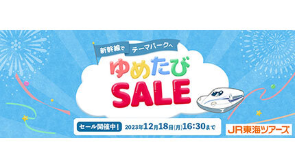 ジェイアール東海ツアーズは12月18日16時30分申し込み完了まで、「往復新幹線」と「ユニバーサルシティエリア」「舞浜/新浦安エリア」のホテルをセットにした、EX旅パックのスペシャルプラン「新幹線でテーマパークへ!ゆめたびSALE」を開催している。