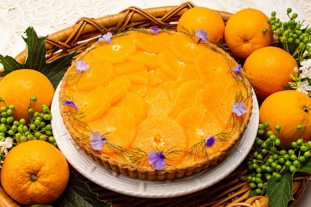 サクサクのタルトにアーモンドクリームと甘酸っぱいクリームを重ね、柑橘が豊富な地域ならではのタルトに仕上げています。