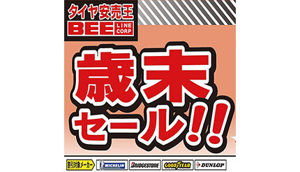 タイヤ安売王ビーライン、国内一流メーカーのタイヤを最大半額で販売する歳末セールを実施中