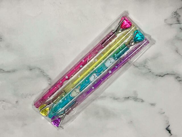 なんともかわいい、キラキラのジュエル付きのペン4本が登場しました。