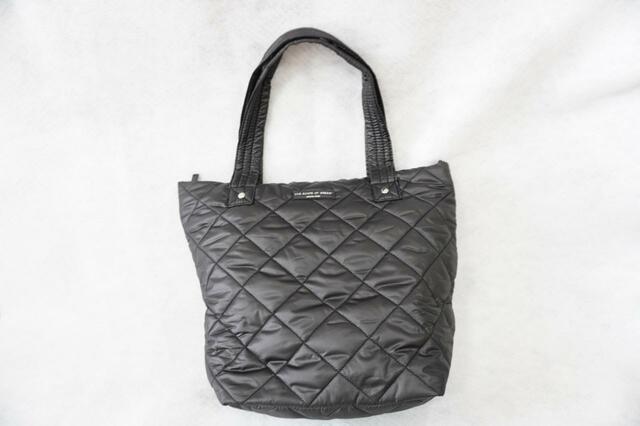 大きなダイヤ柄が際立つキルティング素材のバッグです。キルティングのバッグはカジュアルな印象になりがちですが、今回は光沢のある生地を使用しているので、高級感があります。