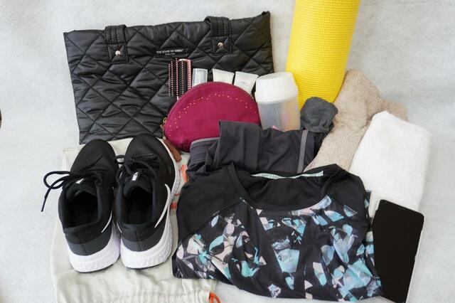 また、スポーツジムに行くことを想定してタオルやウェア、ヨガマットを入れてみました。