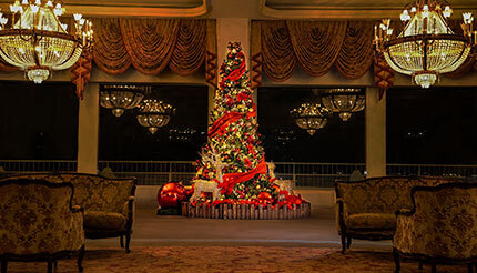 ホテルニューアカオでは、クリスマスを間近に控えて、各館のロビーにクリスマスツリーが設置され、レトロで豪華絢爛な内装と相まって荘厳で暖かい空間を演出している。