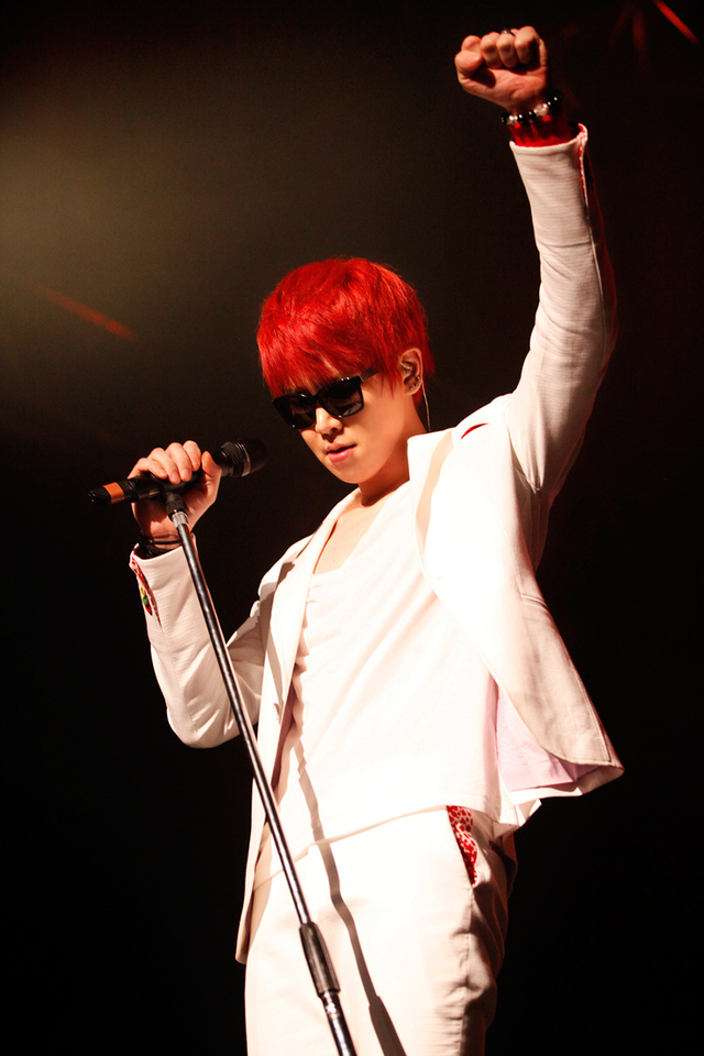 本編のラストに向けて、会場のボルテージを一気に上げるメンバー。 会場をふたつに分けて、ハンビョル&グァンヨンチームとギュミン&ヨンジュンチームでコール&レスポンスの大きさを競うことに。「あなたがいて」「あなたといて」と客席が大合唱しながら、その流れでFUNKY MONKEY BABYSの『希望の唄』を熱唱。そして、溢れそうな熱気の中、『Greatest World』で会場が一体となってジャンプしながら大盛り上がりで本編を締めくくった。
