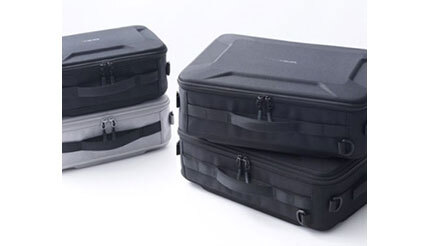 両サイズ共通の特徴として、天面と底面にはEVAのセミハード素材、側面にはボードと厚みのあるクッション材を採用、天面内側にも柔軟性と弾力性をもつEVA素材を採用しており、収納物を傷や衝撃から守る。