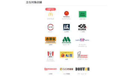 スシローやUber Eats、かっぱ寿司、タリーズなど多数追加