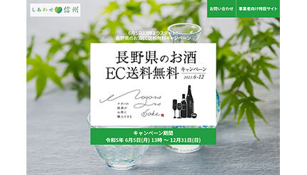 同キャンペーンでは、参加事業者のECサイトで対象商品を購入した際に発生する送料の全額を長野県が負担することで、購入者は商品代金のみで長野県産の酒類を購入できる。