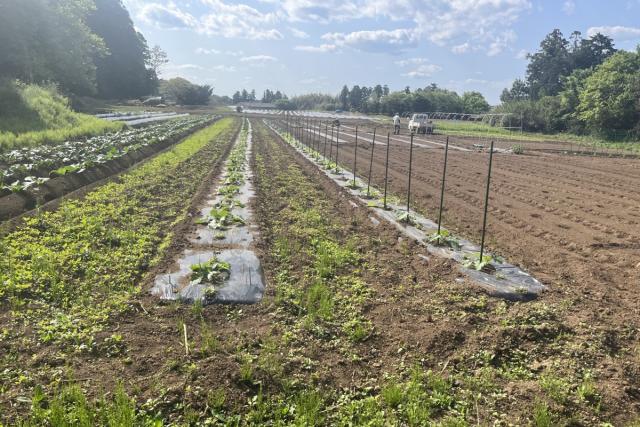 施設から徒歩5分ほどの場所にある「TACO FARMー多古ファームー」に移動して、旬の野菜を収穫するアクティビティ。夕食のBBQタイムでとれたての新鮮な野菜をいただけますよ。