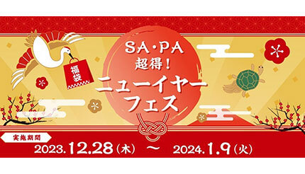 西日本高速道路(NEXCO西日本)と西日本高速道路サービス・ホールディングスは、12月28日~2024年1月9日の期間に高速道路のサービスエリア(SA)とパーキングエリア(PA)において、「SA・PA 超得!ニューイヤーフェス」を開催する。