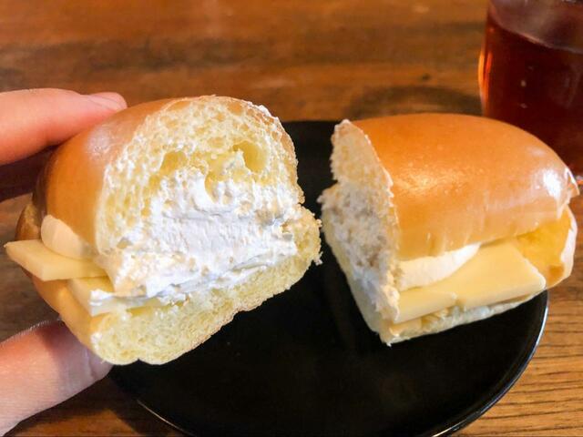 ブリオッシュ生地は表面がつやつや、内側が少しパサパサしていますが、ホイップクリームがたっぷり挟んであるのでちょうど良い食感になっています。