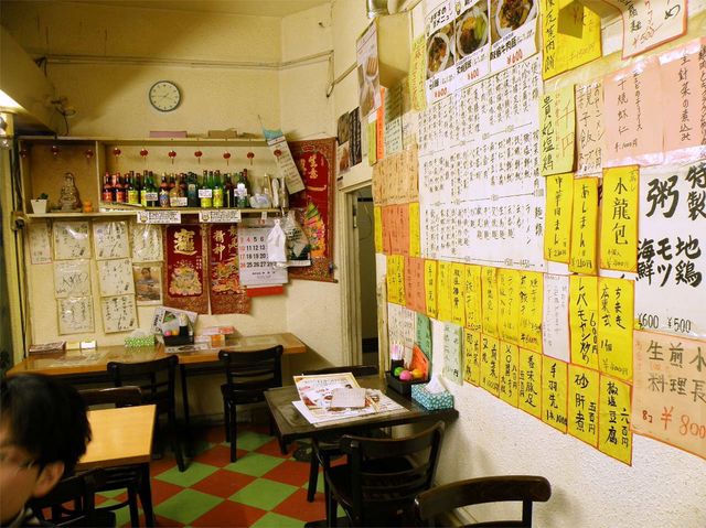次は、中華街から少し外れた、広東家庭料理のお店「天龍菜館」。JR石川町駅から徒歩約4分、車庫を改装したという狭い同店の壁には、薬膳スープをはじめとした手書きのメニューが、隙間なく並べられている。