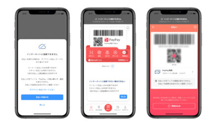 7月20日から提供開始した「オフライン支払いモード」は、インターネットに接続していない状況でもストアスキャン方式(決済画面を加盟店が読み取る方式)で決済ができる機能。この機能の提供により、通信障害時はもちろん、地下や多くの人が集まるイベント会場などの通信が不安定な状況でも、「PayPay残高」または「PayPayあと払い」で決済できるようになった。