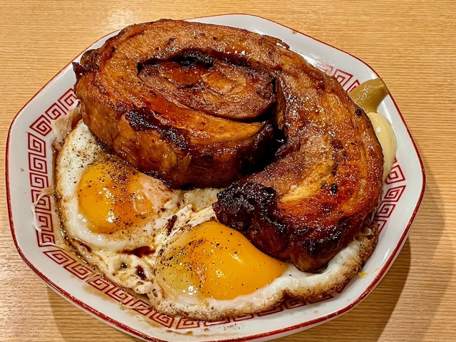 【Heart Restaurant 安ざわ家 練馬店 】 のの字に巻いたキングチャーシュー。直径は、ほぼ手のひらサイズ