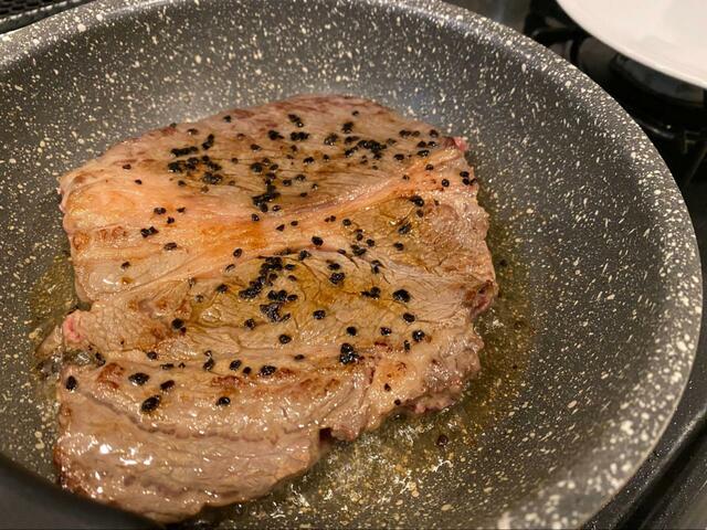 塩こしょうで下味をつけるタイミングで、スパイスアップ ブラックガーリックを全体に振りかけます。塩こしょうと同じようにかけるだけなので、下準備がとっても簡単!両面に振りかけたら後は焼くだけ。