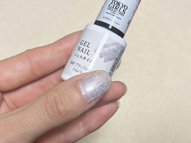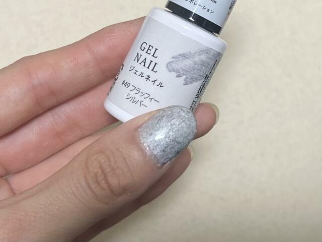 シルバーはポリッシュがドロっとしており、同じダイソーのネイルでもブルーとは違う質感でした。
