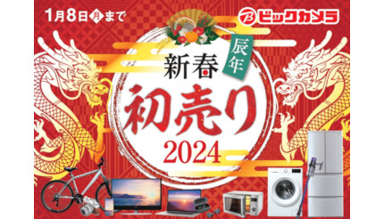 ビックカメラは、2024年1月1日10時から「2024年新春福箱」をビックカメラ各店で販売する。また、ビックカメラ各店とインターネット通販サイト「ビックカメラ・ドットコム」では、2024年1月1日から3日限定でお買得商品を販売する「3日間限りの初夢特別価格!」を実施するほか、同社指定商品を購入した人へのポイントプレゼントや、同社指定商品のポイントアップなどを行う「お年玉特典」も実施する。