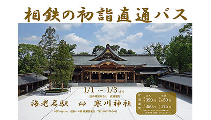 相鉄バスは2024年1月1日~3日の期間、寒川神社初詣直通バスを日中のみ運行する。