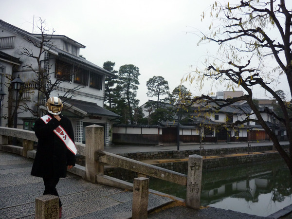 仮面宣伝マンが劇場に向かう時間は12:00PM、出番までにまだ時間があると思い、彼は町並保存地区として、重要文化財などが残っている倉敷美観地区まで、足を伸ばした。