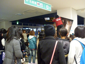 熱いファンに見送られ、ある種の達成感を感じた様子の宣伝マン。16:40に「バルト11」を出て向かったのは駅ではなく、エアポートだ。