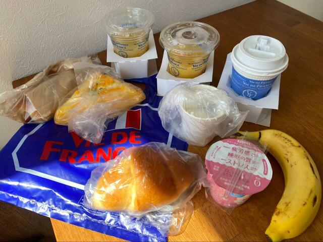 VIE DE FRANCEのモーニングは、パンに加えて選べるドリンク、ヨーグルトorゆで卵orバナナがセットになっています。