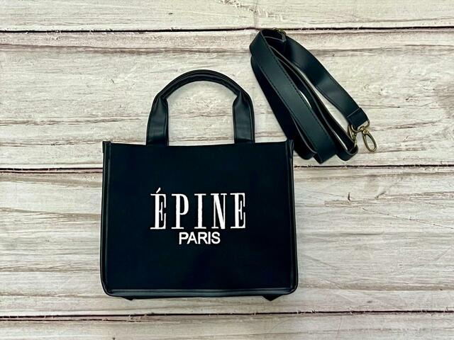 エピヌで大人気のブックトートがそのまま小さくなったようなデザインで、おなじみの「EPINE PARIS」のロゴがホワイトで刺繍されています。