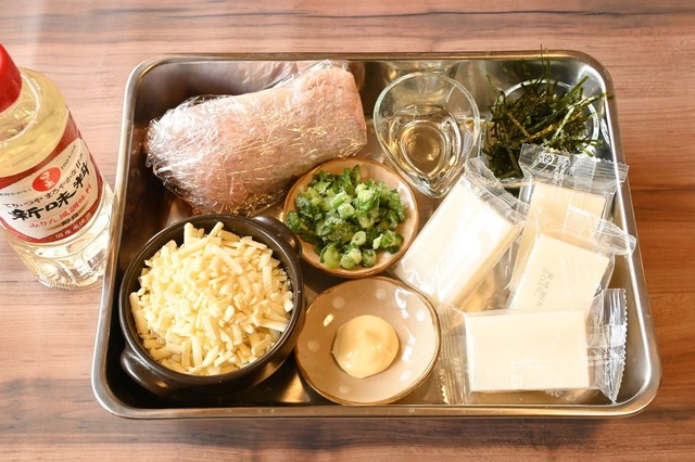 8.皿に移し、鶏肉、刻みのり、青ねぎの順にのせ、マヨネーズをかける。お好みでタレを回しかける。